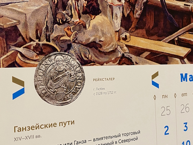 АО «СПбМТСБ» "Великие торговые пути"Календарь наполнен большим количеством интересной исторической информацией. Для более глубокого погружения в тему мы использовали карты и монеты той эпохи.