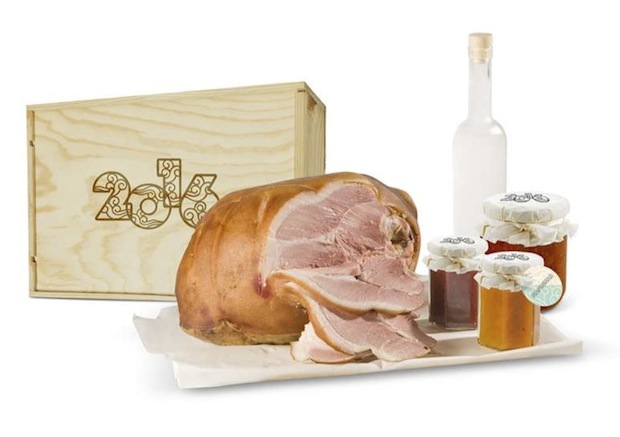 Цельная копченая свиная нога (по старинной традиционной рецептуре копчения на ольховой щепе), вымоченная в рассоле из веток и кореньев, изготовленная на небольшой семейной ферме в Тамбове, удивит своим вкусом любого избалованного гурмана. В дополнении к окороку, мармелад ручной работы к мясу со вкусом сладкого перца и со вкусом нежного ягодного пралине, а так же аджика из томленных сезонных овощей, с тонким вкусом дымкА. Открыв деревянный короб, наполненный такими редкими и удивительными продуктами, получатель будет в восторге, а легкий запах копчения не удержит ни одного получателя от сиюминутной трапезы и мыслях о благодарности к дарителю.