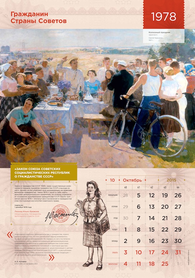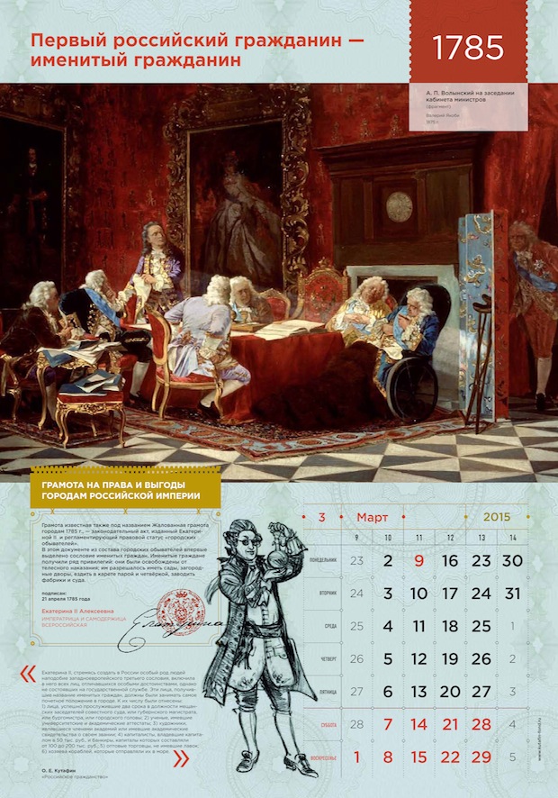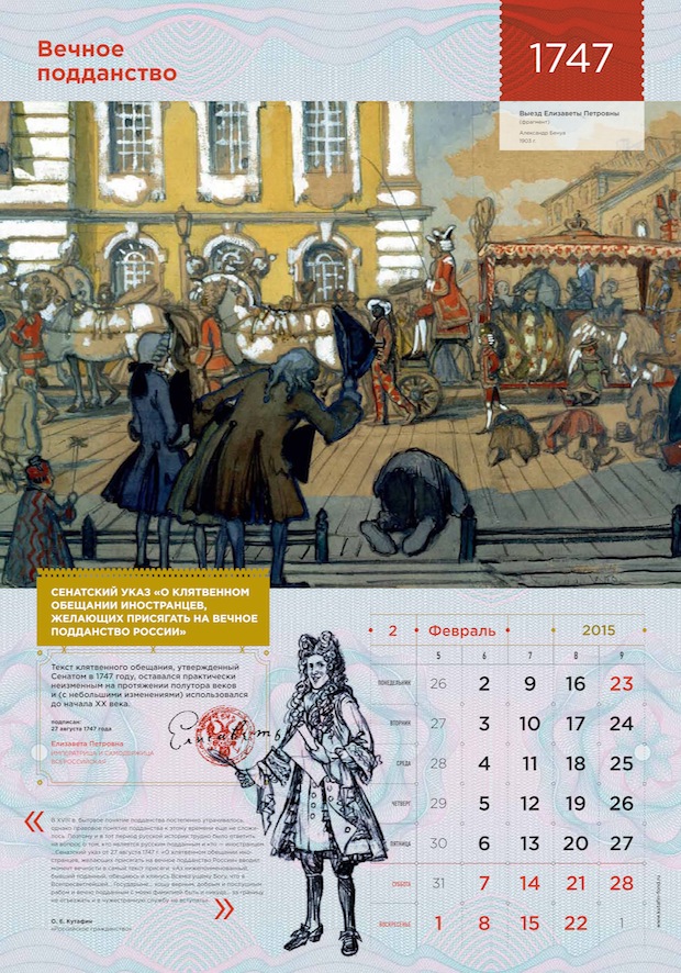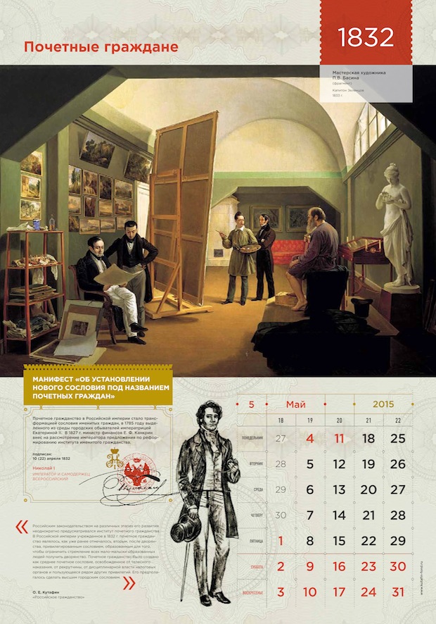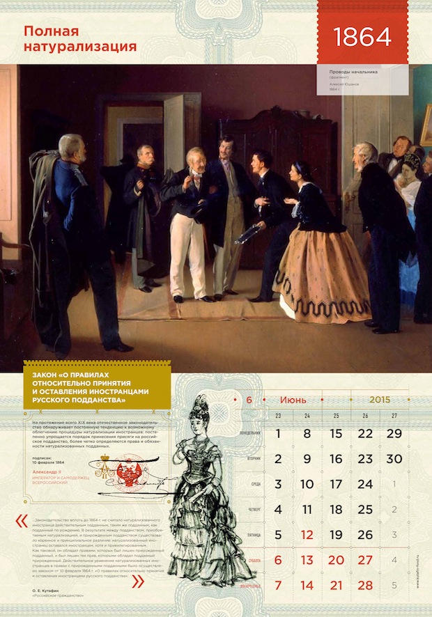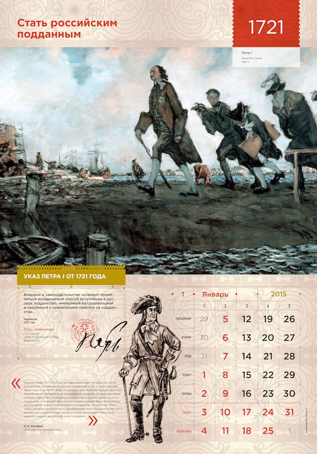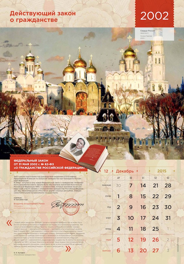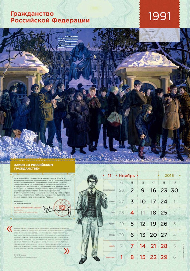 «Российское гражданство» – книга интересная, изобилующая неожиданными историческими фактами, она рассказывает о том, как век за веком менялся российский закон о гражданстве, и как граждане менялись вместе с ним. Прочитав книгу, мы поняли, что данную тему не стоит упрощать: нужно показать материал во всем его впечатляющем многообразии. История и право, государство и гражданин, конкретные документы и абстрактная «атмосфера эпохи», реальные законодательные акты и авторская интерпретация их исторической роли – все это может найти отражение в нашем календаре. Нашу концепцию можно описать как «Наука – это сложно, но интересно». Мы решили показать мир науки таким, каким видел его сам автор: богатым, многокомпонентным и, одновременно, ярким, увлекательным, захватывающим.