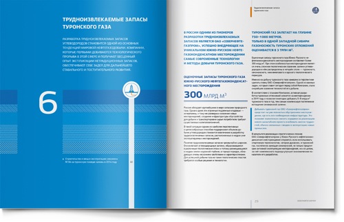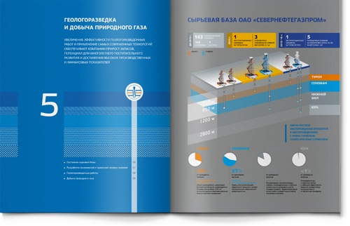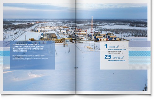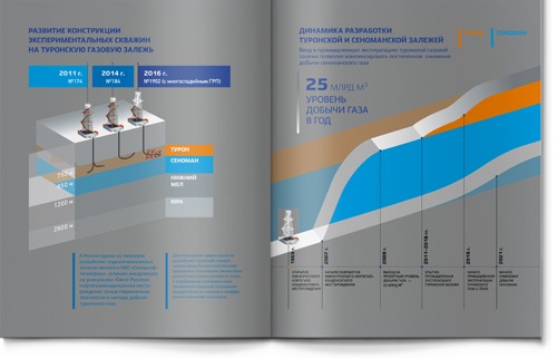 Внешне все северные нефтегазовые компании выглядят примерно одинаково: тонкие силуэты буровых вышек, маленькие индустриальные оазисы посреди заснеженной тундры, бесконечные трубопроводы… Уникально то, что скрыто от глаз под землей – глубина бурения. Мы предложили клиенту использовать это преимущества и показать его уникальную глубину в годовом отчете.