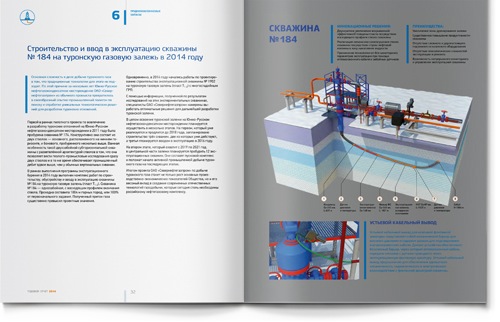 Скважину нельзя сфотографировать изнутри, но можно нарисовать. Поэтому, мы решили создать для годового отчета серию инфографики, наглядно показывающую, где и как работают буровые вышки Севернефтегазпром. Оригинальная трехмерная графика демонстрирует не только фактические результаты отчетного года, но и впечатляющие технические возможности нашего клиента.