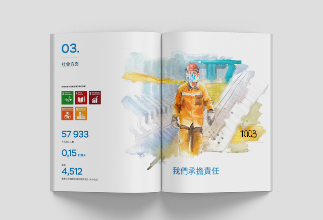 Концепция строится на демонстрации основных действий, за счет которых компания добивается развития в векторе заботы о будущем. Мы «говорим» от лица компании, подтверждаем заголовок обложки на каждом шмуцтитуле. В каждом заголовке — действия.
