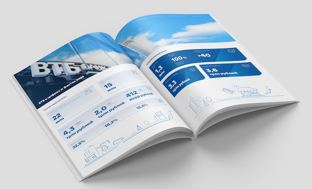 Годовой отчет выполнен в фирменных цветах ВТБ, с акцентом на прозрачность и динамичность. Современный подход в дизайне делает отчет наглядным и удобным для восприятия. Яркие иллюстрации и схемы дополняют текстовые разделы, привлекая внимание к ключевым достижениям. «Линии роста» — это история о том, как усилия каждого сотрудника и вклад партнеров способствуют общему успеху. ВТБ демонстрирует, что основной ресурс компании — это люди. Отчет доступен для просмотра на сайте ВТБ по ссылке https://www.vtb.ru/media-files/vtb.ru/sitepages/ir/financial-results/annual-reports/VTB_GO_2023_rus.pdf