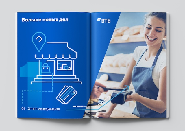 Концепция «Линии роста» Годовой отчет демонстрирует достижения банка через сочетание фотоизображений и графики. Такое визуальное решение отражает движение вперед, динамику и синергию участников всех процессов. Центральная идея: успехи ВТБ — это успехи его людей, которые являются главной движущей силой.